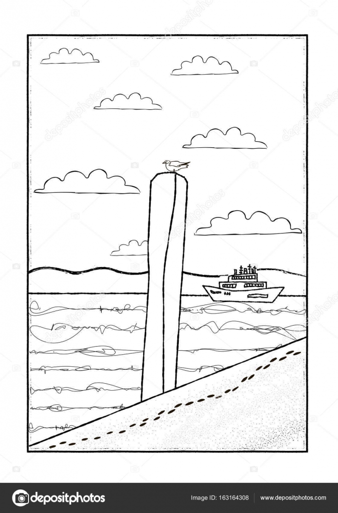 Monochrome Drawing Of The Shore In The Port Stock Vector C Silbervogel 163164308