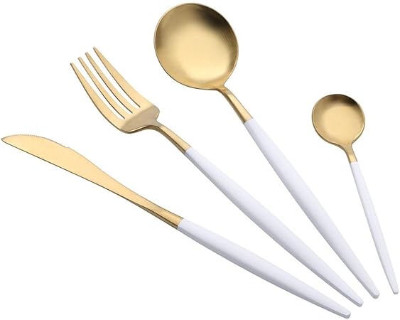 Igspfbjn Posate In Acciaio Inossidabile 304 Cucchiaio Disegno A Colori Posate In Acciaio Inossidabile Posate For Bistecca Occidentale Set Da 4 Pezzi Posate Viola Posate Blu Color Gold Amazon It Casa E Cucina