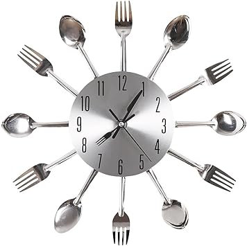 Ohuhu Orologio Da Parete Disegno Forchetta Cucchiaio Posate Da Cucina Orologio Decorativo Argento Amazon It Casa E Cucina