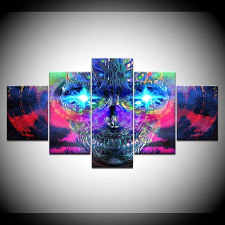 Tele Per Hobby Creativi Senza Cornice Tela Pittura Teschio Disegno Psichedelico 5 Pezzi Pittura Murale Carte Da Parati Sfondi Modulari Stampa Poster Per Soggiorno Decorazioni Per La Casa Senza Amazon It Casa E Cucina