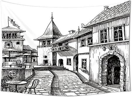 Wanderlust Decor Arazzo Old Peaceful City Disegno Ristorante Terrazza Schizzo Downtown Lifestyle Scena Camera Da Letto Soggiorno Dorm Decor Nero Bianco Multicolor 36w By 24l Inch Amazon It Casa E Cucina