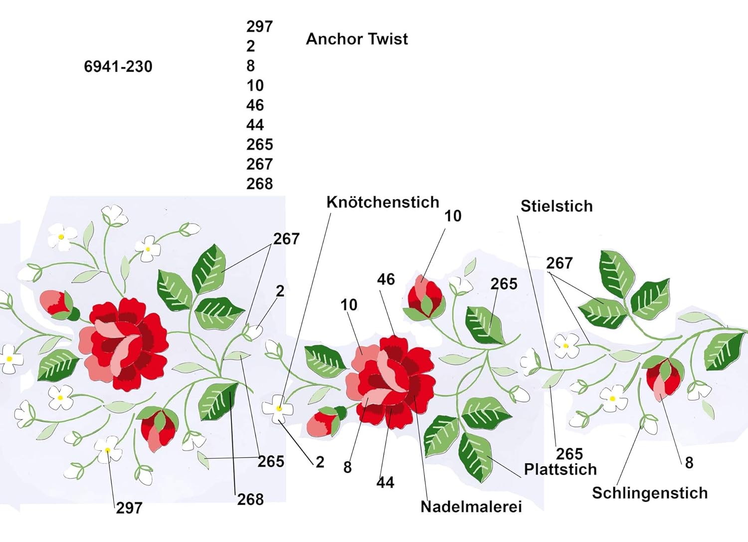 Set Completo Per Tovaglia Con Disegno Prestampato Da Ricamare Runner Da Tavola Tischdeckenshop24 Set Da Ricamo Rose Rosse Set Da Ricamo Con Disegno Da Ricamare Per Adulti Casa E Cucina Hobby Creativi