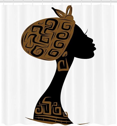 Adacrazy Profilo Viso Silhouette Donna Con Foulard Tribal Art Folk Elements Africano Donna Tenda Da Doccia Tessuto Bagno Decor Set Con Ganci Marrone Nero Amazon It Casa E Cucina