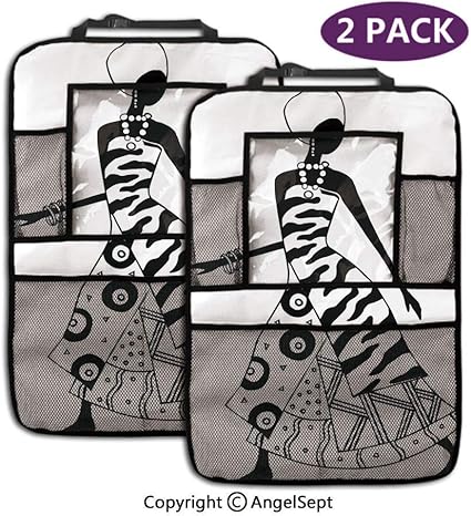 Not Applicable Organizer Per Sedile Posteriore Per Auto Silhouette Donna In Abiti Tribali Nativi Disegno Accessori Bianco Nero Con Supporto Per Tablet Da 9 5 Pollici 2 Pezzi Amazon Es Coche Y Moto