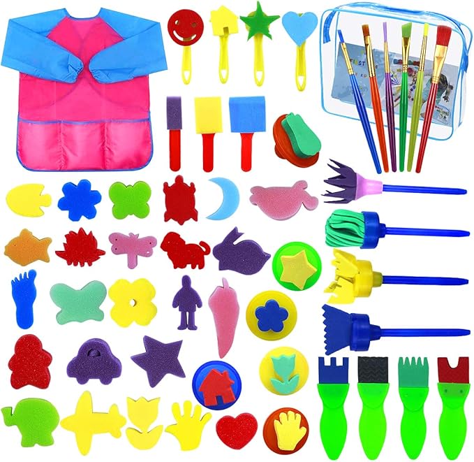 Fodlon Paint Spugne Per Bambini 52 Pezzistrumenti Da Disegno Per Bambini Prima Educazione Pennelli Per Spugna Pennelli In Schiuma Di Spugna E Grembiuli Kit Di Pittura Per Bambini Amazon It Giochi E Giocattoli