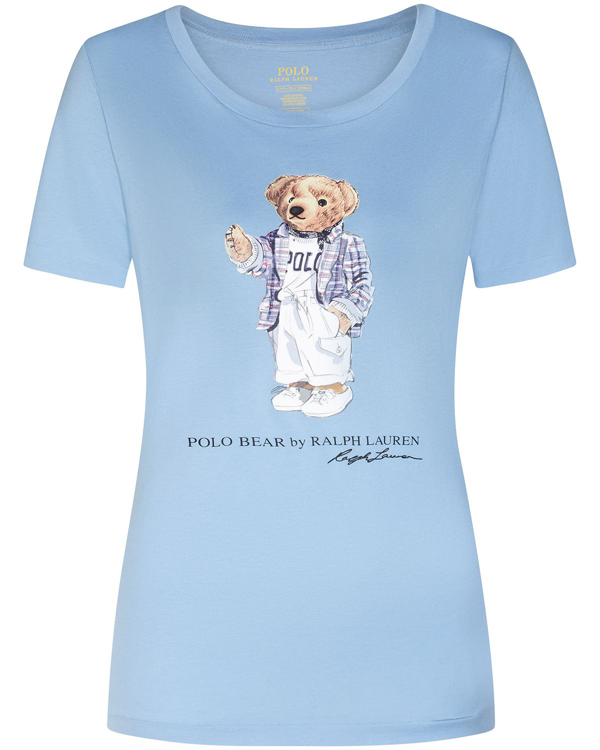 Polo Ralph Lauren T Shirt In Cotone Azzurra Disegno E Logo Frontali 211750405002 In Celeste Modesens