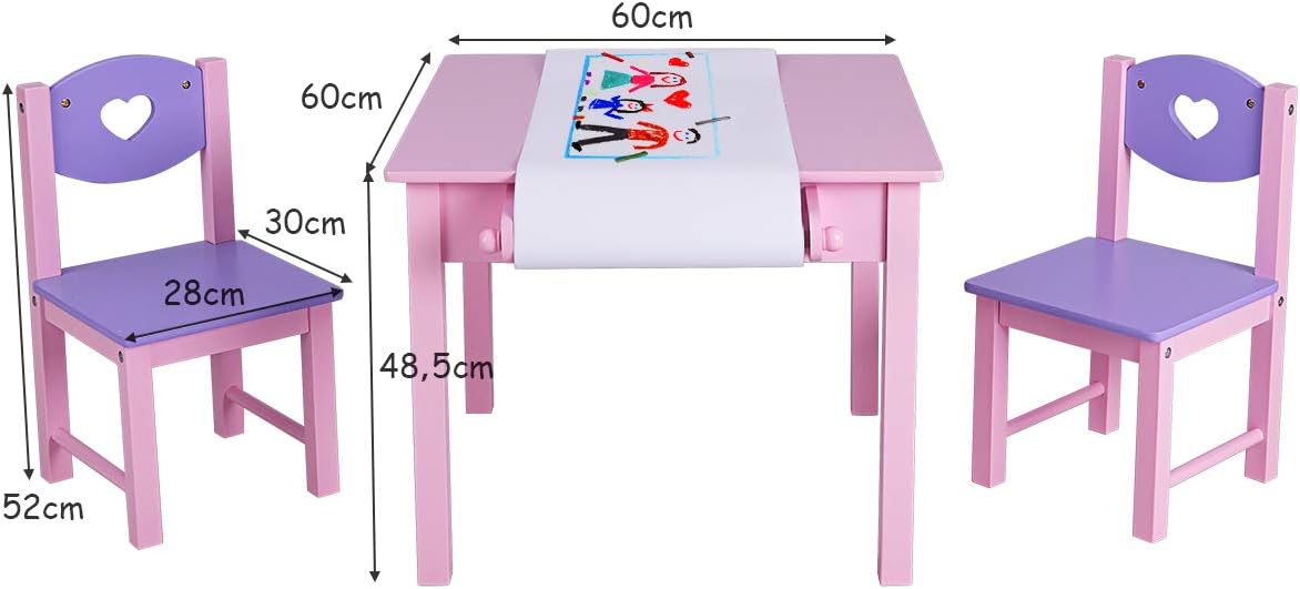 Costway Tavolo Da Disegno Per Bambini E 2 Sedie Tavolo Con Portarotolo Di Carta E 2 Cassetti Mobiletto Per Bambini Rosa Viola Amazon It Prima Infanzia