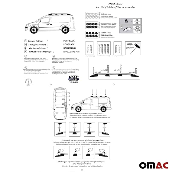 Tetto Struttura Con Barre Portatutto Set Per Vw Caddy Iii Iv Breve Con Tuv Abe