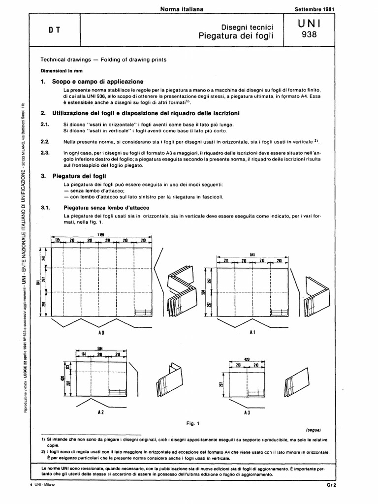 Uni 938 1981 Disegni Tecnici Piegatura Dei Fogli