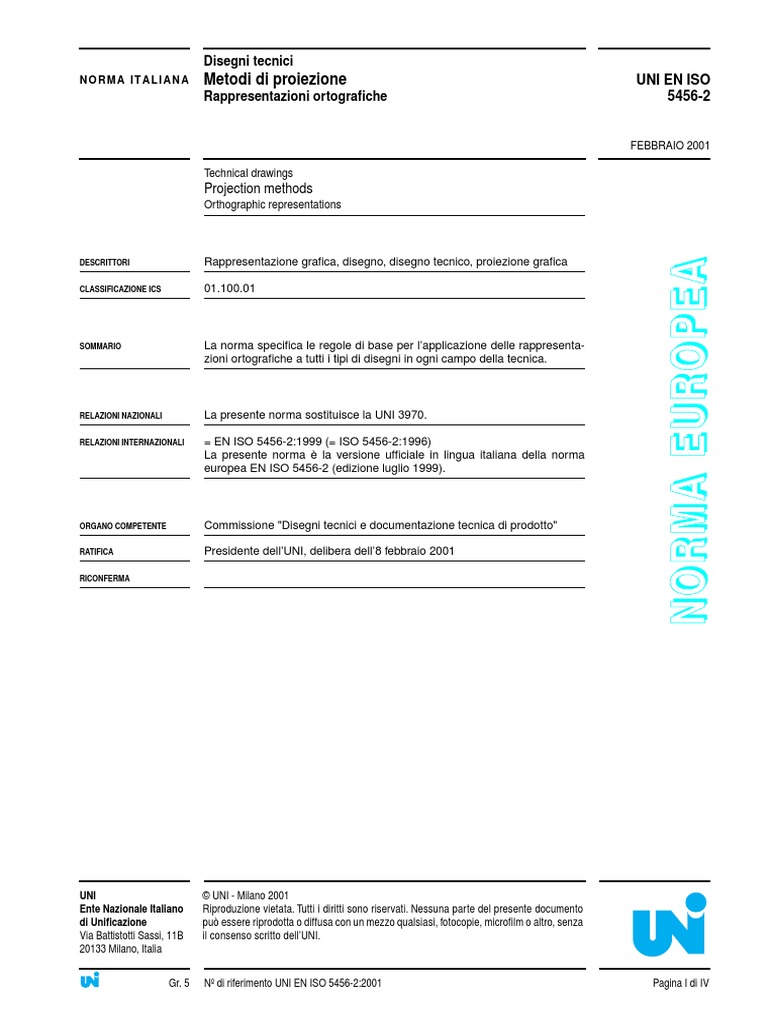 Disegni Tecnici Metodi Di Proiezione Rappresentazioni Ortografiche Uni En Iso 5456 2