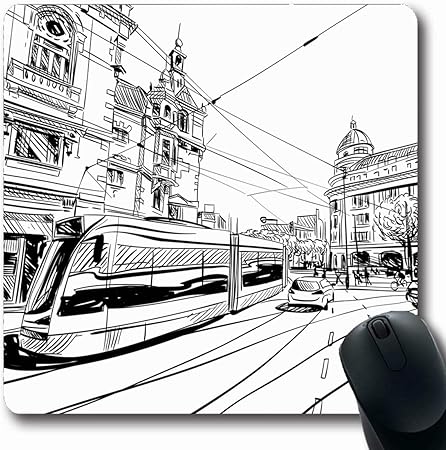 Luancrop Mousepads Citta Street Amsterdam Schizzo Disegnato A Mano Citta Schizzo Tram Disegno Citta Vista Stradale Design Antiscivolo Gioco Tappetino Per Mouse Tappetino In Gomma Amazon It Elettronica