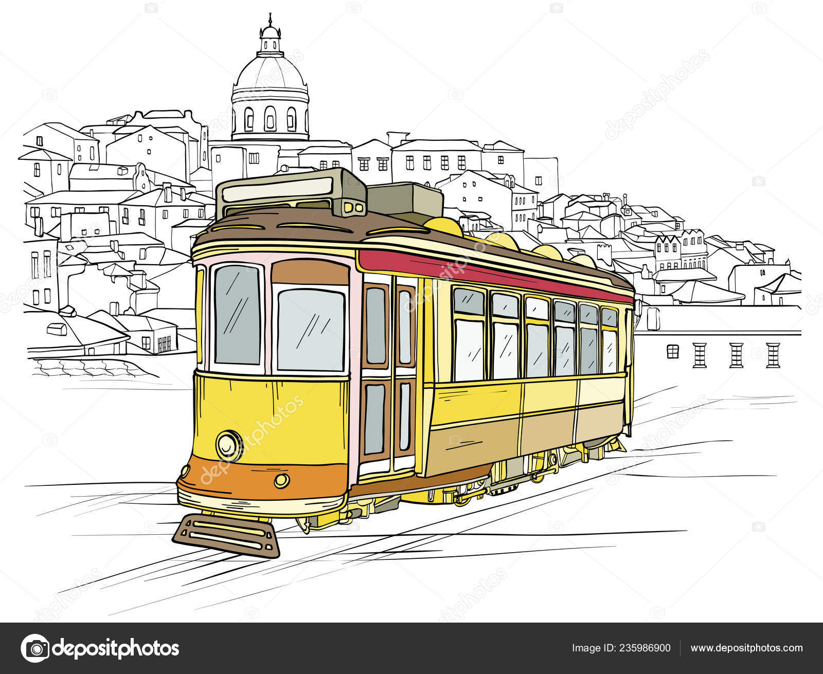 Drawing Of Old Tram In Lisbon Portugal Royalty Free Cliparts Vectors And Stock Illustration Image 12233387