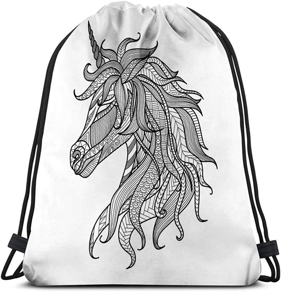 Zaino Da Palestra Con Cordino Borse Da Yoga Con Coulisse Viaggio Per Uomo E Donna Disegno Unicorno Stile Zentangle Libro Da Colorare Logo Segno Amazon It Valigeria
