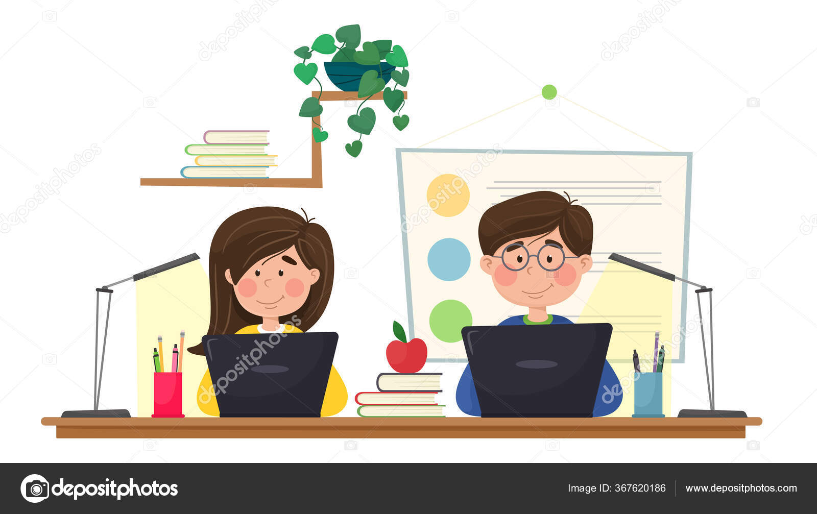 Ragazzo E Ragazza Cartoni Animati Computer Online Parlando Isolato Disegno Vettoriale Illustrazione Immagine E Vettoriale Alamy