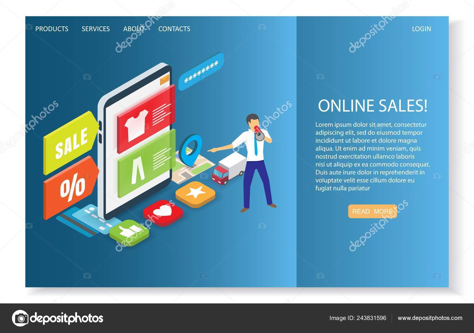 Modello Di Disegno Di Vettore Di Vendita Online Sito Web Atterraggio Pagina Vettoriali Stock C Siberianart 243831596