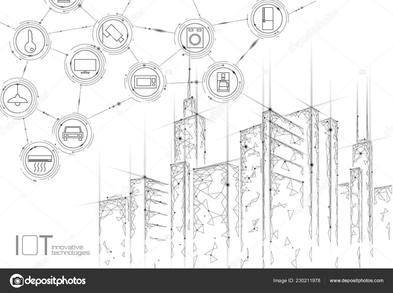 Internet Delle Cose A Basso Poli Smart City Rete Metallica 3d Intelligente Concetto Di Building Automation Iot Moderna Icona Di Controllo Wireless Online Urbano Paesaggio Urbano Tecnologia Banner Vettoriale Illustrazione Grafica