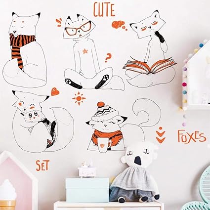 Adesivo Murale Volpi Figura Stilizzata Cartone Animato Carino Volpe Elegante Lettura Applique Decorativa Per Camerette Camera Da Letto Decalcomanie Carta Da Parati Amazon It Fai Da Te