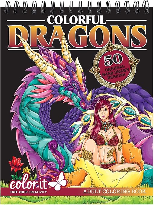 Colorit Libro Da Colorare Per Adulti Motivo Dragoni Colorati 50 Disegni Su Un Lato Carta Spessa E Liscia Copertina Rigida Piatta Rilegatura A Spirale Stampa Usa Pagine Di Drago Da Colorare