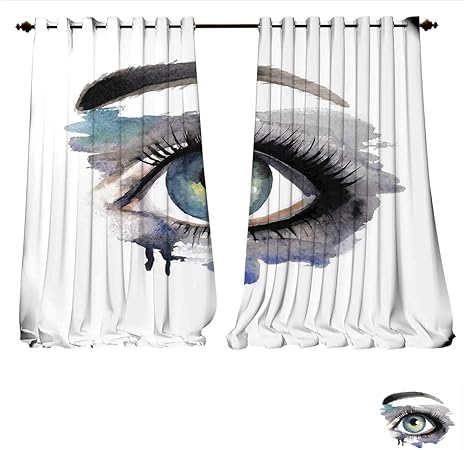 Williamsdecor Tenda Per Finestra Drappeggio Dipinto A Mano Stile Occhio Di Una Donna Che Guarda In Alto Disegno Arte Astratta Con Pennellate Tende Decorative Per Soggiorno W108 X L96 Multicolore Amazon It Casa