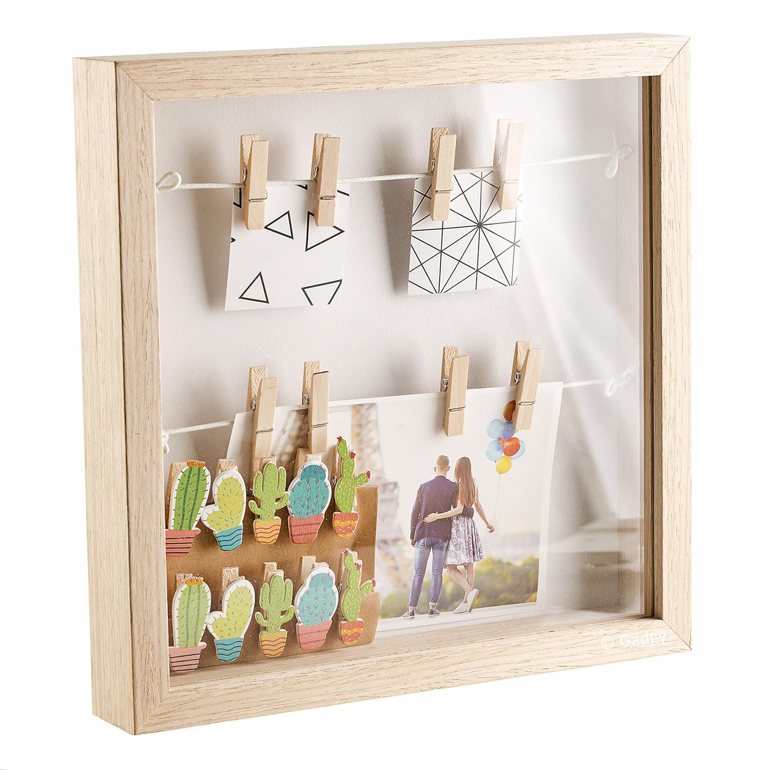 Disegno Di Legno 25x25x4 Cm Effetto Profonda Ombra Gadgy Cornice 3d Portafoto Con 18 Mollette Decorazione Della Parete Originale Cornici Foto Casa E Cucina