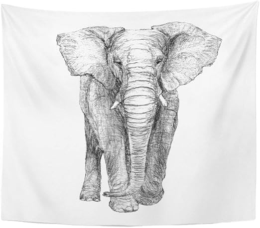 Seenpin Arazzo Grigio Elefante Africano Front View Greyscale Nero E Bianco Originale Matita Disegno Artistico Arredamento Da Appendere Alla Parete Per Soggiorno Camera Da Letto Dormitorio 127 X 152 4 Cm 60 X