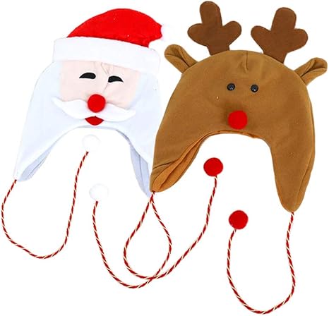 2 Pezzi Di Cappelli Da Elfo Di Babbo Natale E Alce Con Paraorecchie Per La Festa Di Natale Amazon It Salute E Cura Della Persona