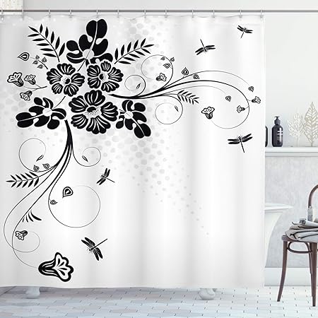 Dragonfly Shower Curtain By Ambesonne Ornamento Floreale Con Felce Foglie Delle Piante Natura Elegance Stilizzato Illustrazione Tessuto Arredo Bagno Set Con Ganci Nero Bianco Tessuto Multi 1 69w X 75l Amazon It Casa