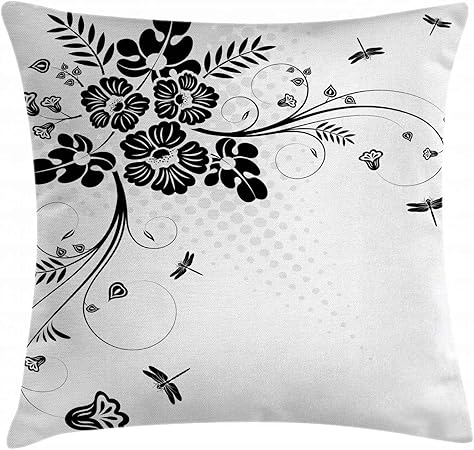 Dragonfly Federa Per Cuscino Da Ambesonne Ornamento Floreale Con Felce Foglie Delle Piante Natura Elegance Stilizzato Illustrazione Decorative Square Accent Pillow Case Nero Bianco Tessuto Multi 1 18 W By 18 L