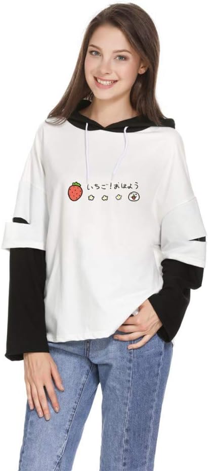 Zjswcp Felpa Felpe Con Cappuccio Da Donna Stile Giapponese Lolita False Con Due Pezzi Felpa Con Disegno Kawaii Di Fragola Felpa Autunno L Amazon It Sport E Tempo Libero
