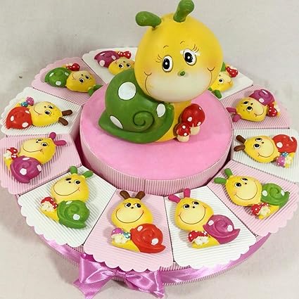 Torta Bomboniera 12 Fette Con Magneti Lumache Felici Colorate Assortite Nascita Battesimo Primo Compleanno Torta Da 12 Fette A Senza Confetti Amazon It Casa E Cucina