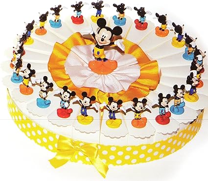 Torta Bomboniere 24 Fette Di Torta Con Topolino In Resina Completo Di Confetti Bianchi Crispo Al Cioccolato Amazon It Casa E Cucina