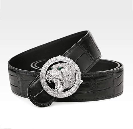 Lisili Cintura Da Uomo Disegno Coccodrillo Vera Pelle Cintura Elegante Cinghia Oro Argento Testa Di Diamante Leopardo Fibbia Nero 110cm 43 3in Amazon It Sport E Tempo Libero