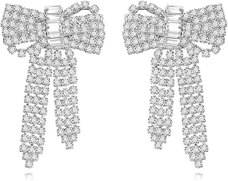 J Memi S Donna Strass Orecchini Ciondolo A Forma Di Fiocco Originale Disegno Gioielli Anniversario Matrimonio Impegno Banchetto Regalo Argento Amazon It Sport E Tempo Libero