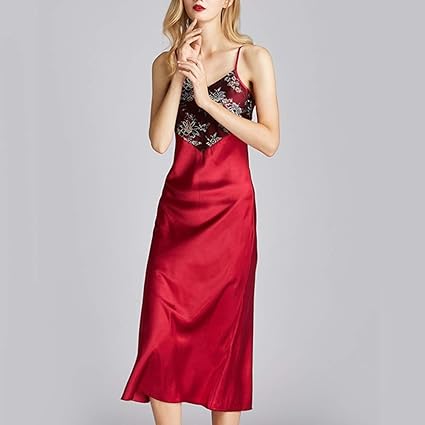 Raso Di Seta Pigiama Con Petto Di Disegno Del Merletto E La Fionda Disegno Adatto Per Il Tempo Caldo Nessun Manicotto Degli Indumenti Da Notte Di M Xl Ideale Regali Di Compleanno Choice Rosso M