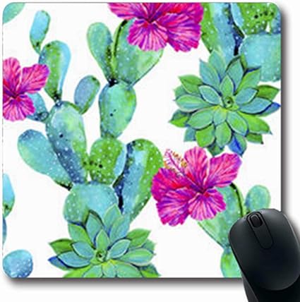 Gsgdae Tappetino Per Mouse Con Disegno Ad Acquerello Cactus Fiori Tropicali Ibisco Natura Botanica Verde Motivo Floreale Esotico Forma Oblunga 20 1 X 24 1 Cm Amazon It Elettronica