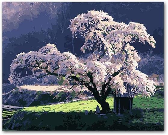 Junszyh Pittura Digitale Paesaggio Di Ciliegio Bianco Pittura Ad Olio Dipinta Da Numeri Immagine Fai Da Te Disegno Da Colorare Su Tela Pittura A Mano Pittura Murale Per Numero 40x50cm No Cornice Amazon It Casa E Cucina