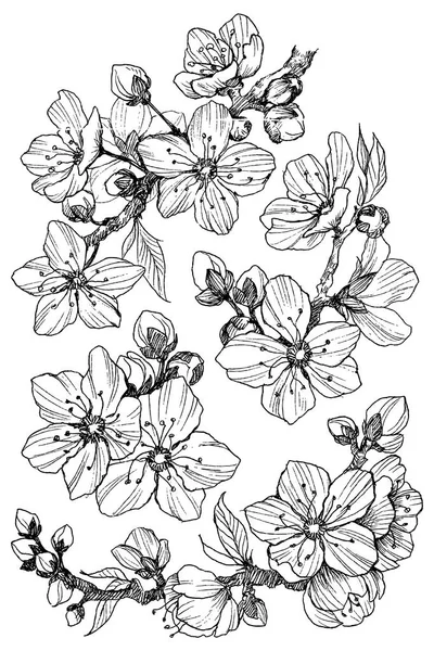Ramo Del Fiore Della Mandorla Isolato Su Bianco Illustrazione Disegnata A Mano Botanica D Annata Fiori Della Primavera Della Mela Illustrazione Vettoriale Illustrazione Di Cinese Sapore 113799560