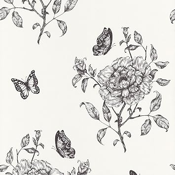 Caselio Shades 67839100 Carta Da Parati A Fiori Farfalle Romantiche Con Il Fondo Bianco Panna E Disegni Nero Amazon It Fai Da Te