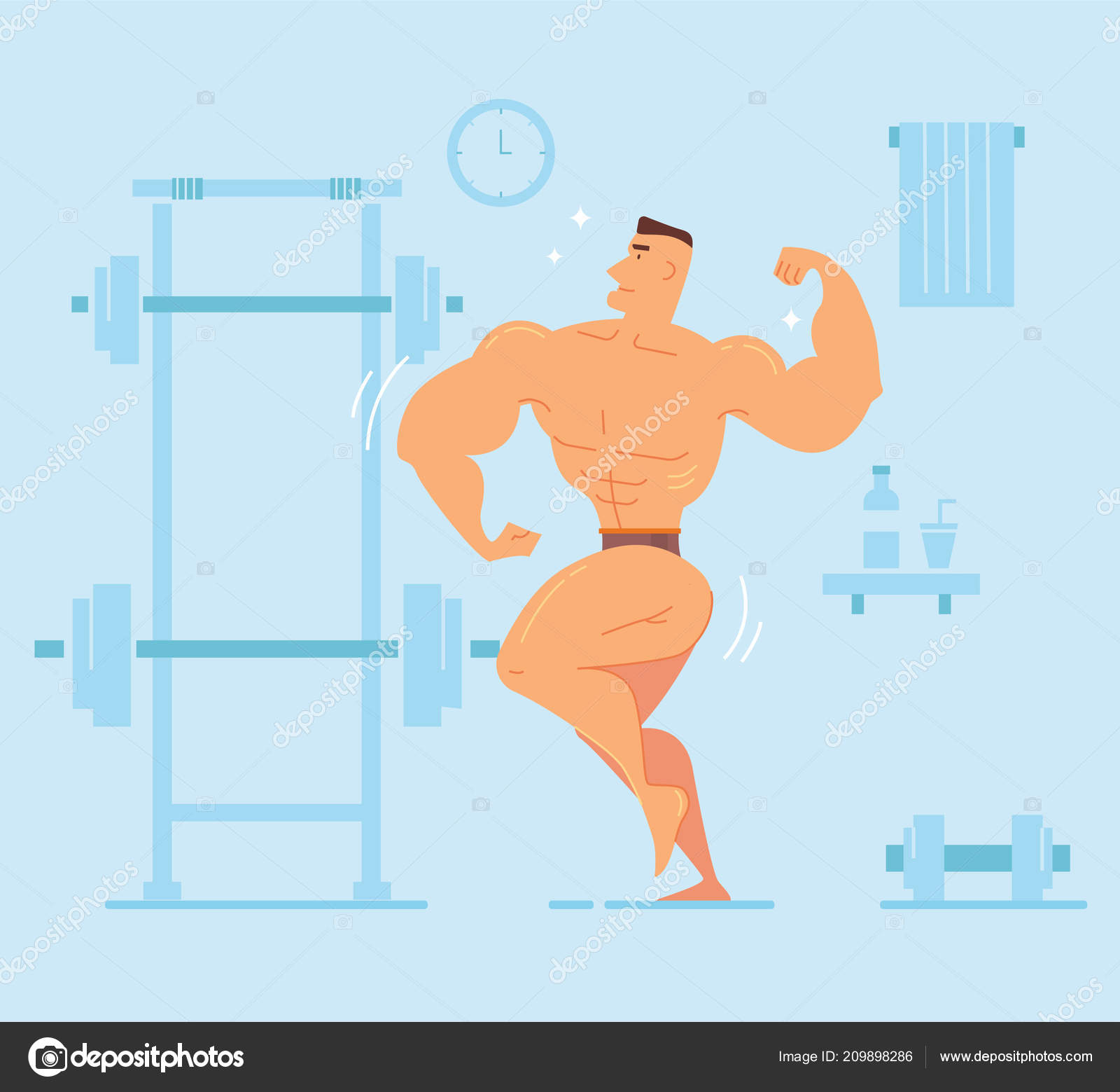 Funny Vector Illustration Bodybuilder Fitness Man Character Gym Doing Sport Stock Vector C Movaliz 209898286
