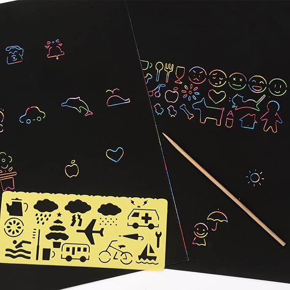 Disegni 100 Fogli Di Disegni Scratch Art Bambini Grandi Scratch Art Set Creativo Fogli Arcobaleno Colorato Da Scarabocchiare Per Appunti Con 5 Penne Stilografiche In Legno E 5 Righelli Da Disegno Giochi