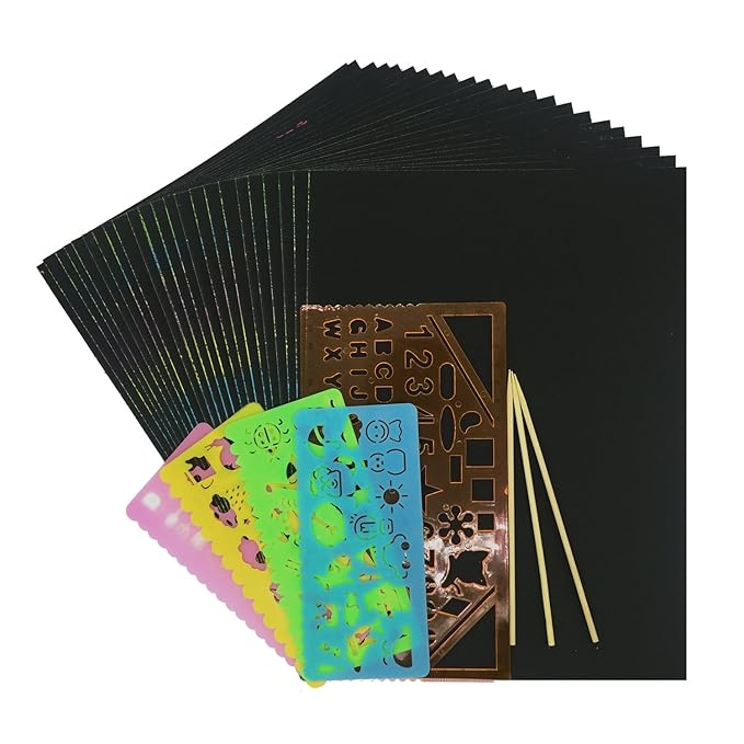 Per Disegnare Stencil E Campioni Inclusi 18 Oro 9 E Argento 9 Bastoncini Purple Ladybug Novelty Carta Da Disegno Scratch Art Per Bambini 36 Fogli Grandi Da Grattare Con Fondi Arcobaleno Giochi