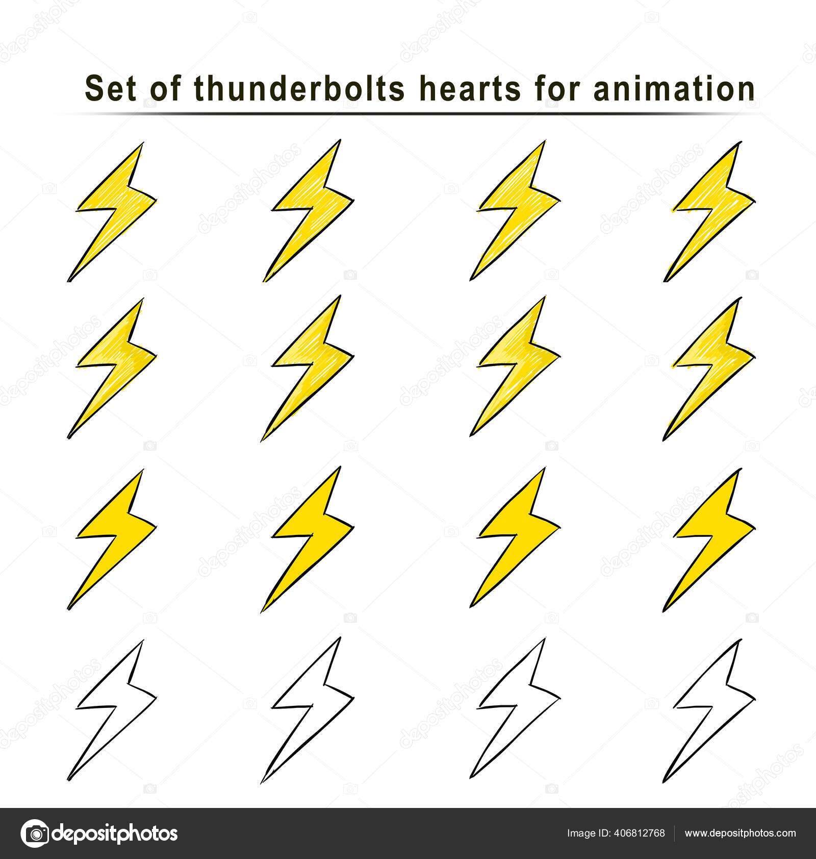 Set Cartone Animato Thunderbolt Animazione Telaio Mano Schizzo Fulmine Vettore Foto Stock Foto Immagini C Andreajk3 406812768 Depositphotos