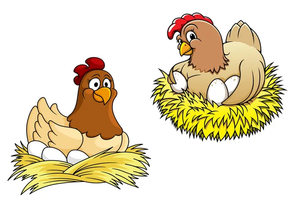 Gallina Del Fumetto Nel Nido Che Cova Il Suo Uovo Vettore Premium