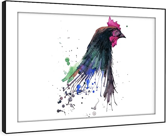 Whats On Your Wall Com Bfa730e Incorniciata Immagine Della Parete Stampe D Arte Acquerello Gallo Gallo Pollo Animal Modern Living Room Camera Pezzo Home Decor Guida Facile Hang 87x61cm Amazon It Casa E Cucina