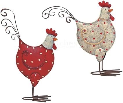Matches21 Statuette Decorative A Forma Di Gallina E Gallo In Metallo Bianco E Rosso Con Pois Da 14 X 16 Cm In Set Da 2 Pezzi Amazon It Casa E Cucina