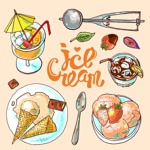 Cucina Schizzo Crema Wafer Gelateria Gelato Dessert Ghiaccio Cibo Vettore Disegno Cono Menu Icona Italiano Canstock