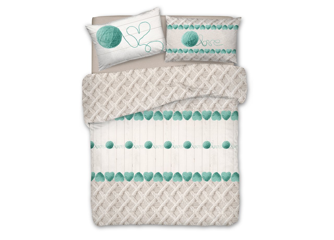 Coppia Cuscini Arredo Imbottiti 40x40 Disegno Love Gomitolo Colore Beige