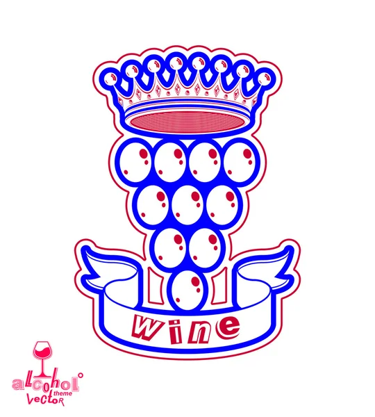 Poster Vector Grappolo Di Uva Foglie Di Vite Ornato E Il Bicchiere Di Vino In Bianco Isolato Su Bianco Outline Elementi Di Design Per Il Vino E La Cantina Oggetti Di Frutta