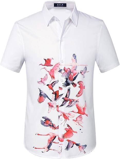 Sslr Uomo Camicie In Manica Corta Stile Hawaiana Estate Spiaggia Uccello Disegno Small Bianco Rosso Amazon It Abbigliamento