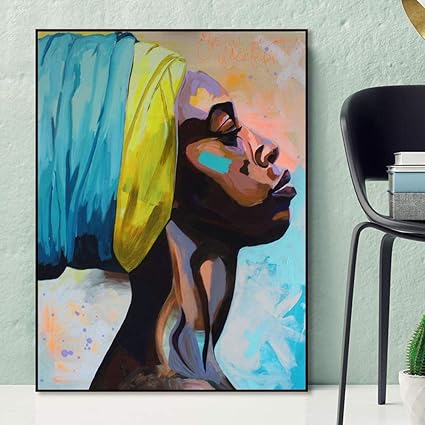Qianlei Donne Africane Astratte Quadri E Stampe Su Tela Ritratto Moderno Di Donna Nera Arte Della Parete Immagini Su Tela Decorazioni Per La Casa 60x90cm Senza Cornice Amazon It Casa E Cucina